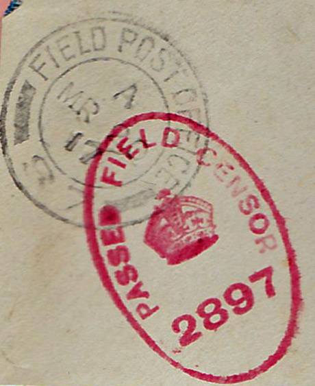 Letters back were collected from the men from field post offices. These were equipped as comprehensively as a village sub-office, according to Masters of the Post: The Authorized History of the Royal Mail by Duncan Campbell Smith. Men could even buy War Savings Certificates there exactly as the population did back home. The mail was date-stamped with the field postmark and sent to the base post office for its journey home.