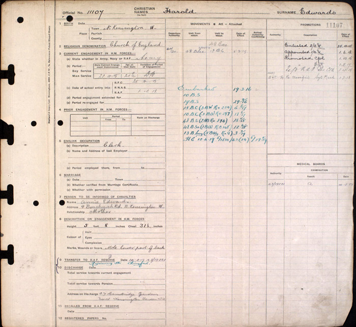 The Royal Flying Corps became the Royal Air Force on 1 April 1918 so father served with the RAF for one year until he was demobbed on 5th March 1919.